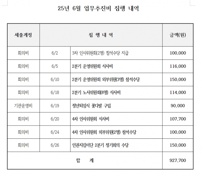6월 업무추진비 내역공고 페이지 정보 작성자 한동주 작성일 25-07-04 17:35 조회 8,732회 댓글 0건 본문 6월 업무추진비를 다음과 같이 공고합니다. 이전글 다음글 목록 답변