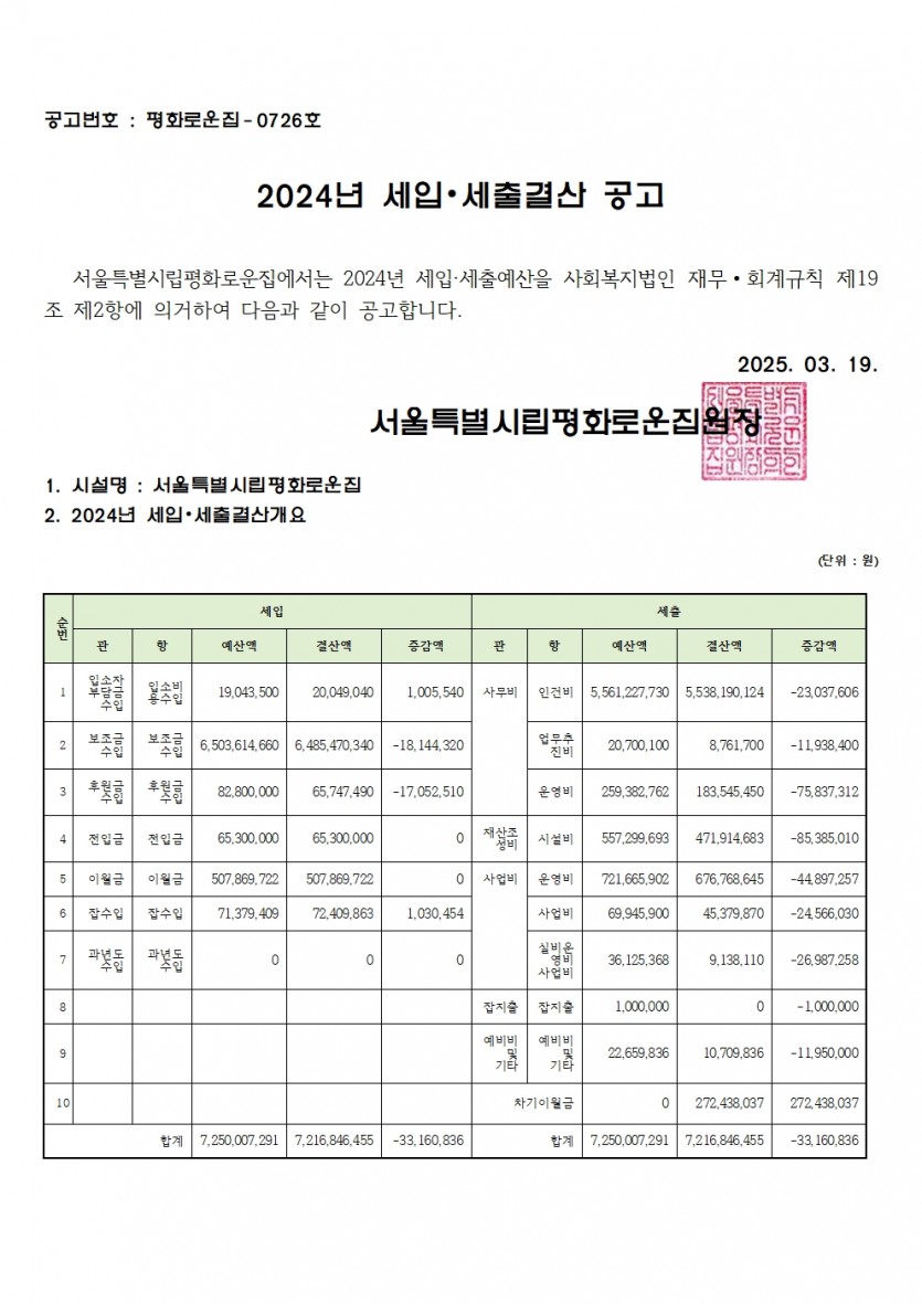 2024년 세입세출 결산서 공고 페이지 정보 작성자 한동주 작성일 25-03-19 13:28 조회 12,503회 댓글 0건 첨부파일 파일 홈페이지2024 세입.세출견결산공고.pdf (48.3K) 138회 다운로드 DATE : 2025-03-19 13:28:29 본문 2024년 세입세출결산서를 다음과 같이 공고합니다. 이전글 다음글 목록 답변