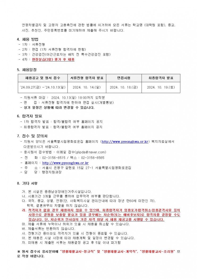 평화로운집 제10차 직원채용공고 페이지 정보 작성자 한동주 작성일 24-09-27 17:36 조회 17,511회 댓글 0건 첨부파일 파일 2024년-생활지도원 10월.hwp (36.5K) 108회 다운로드 DATE : 2024-09-27 17:36:34 파일 시립평화로운집 입사지원서이력서,자기소개서및개인정보동의서.hwp (22.5K) 80회 다운로드 DATE : 2024-09-27 17:36:34 본문 이전글 다음글 목록 답변