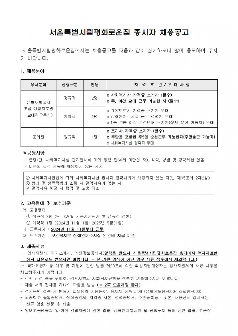 2024년 11차 직원채용 모집 공고 페이지 정보 작성자 한동주 작성일 24-10-14 17:49 조회 17,431회 댓글 0건 첨부파일 파일 2024년-생활지도원 조리원 11월.hwp (48.0K) 153회 다운로드 DATE : 2024-10-14 17:50:30 파일 시립평화로운집 입사지원서이력서,자기소개서및개인정보동의서.hwp (22.5K) 91회 다운로드 DATE : 2024-10-14 17:50:30 본문 이전글 다음글 목록 답변
