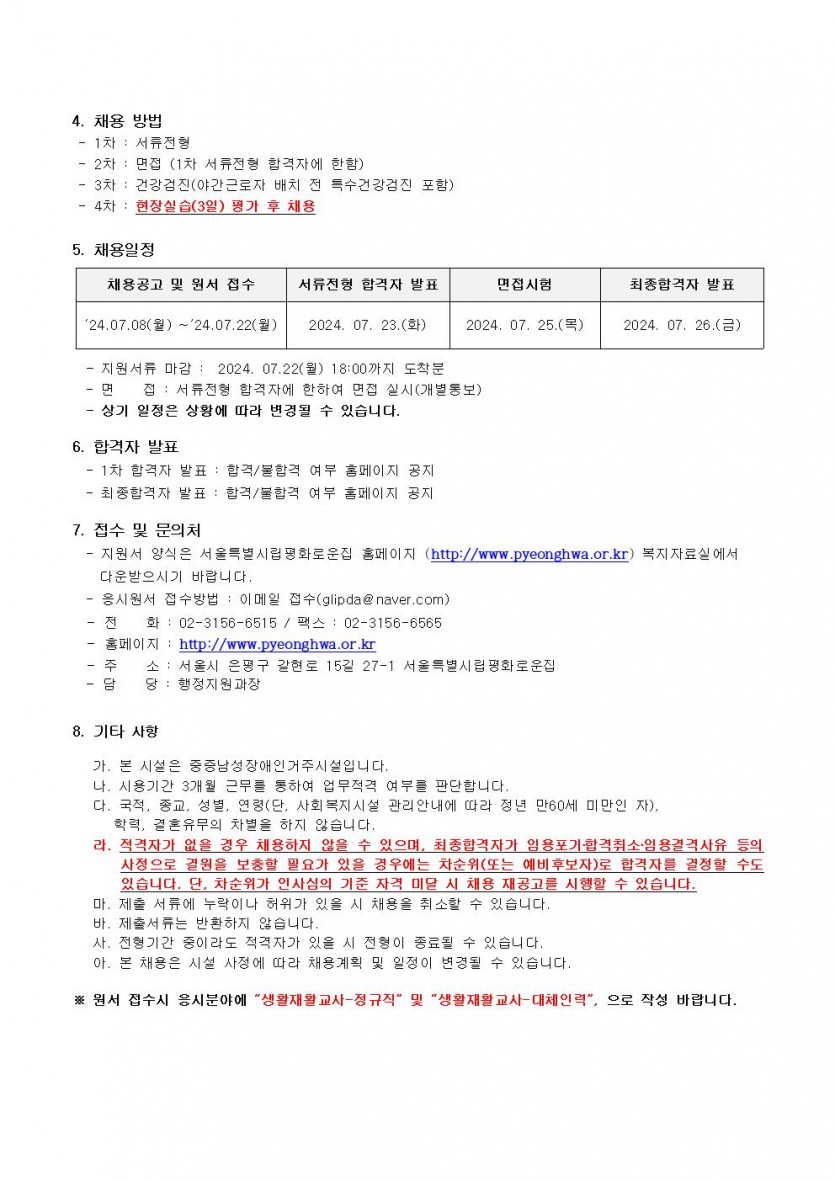 평화로운집 7차 종사자채용 공고 페이지 정보 작성자 한동주 작성일 24-07-08 13:33 조회 18,421회 댓글 0건 첨부파일 파일 2024년-생활지도원-7월.hwp (36.5K) 160회 다운로드 DATE : 2024-07-08 13:33:49 파일 시립평화로운집 입사지원서이력서,자기소개서및개인정보동의서.hwp (22.5K) 124회 다운로드 DATE : 2024-07-08 13:33:49 본문 이전글 다음글 목록 답변