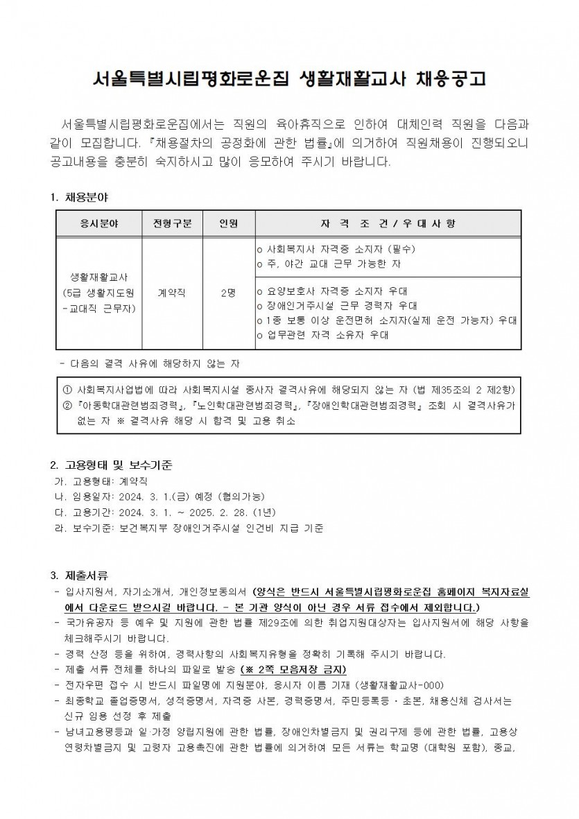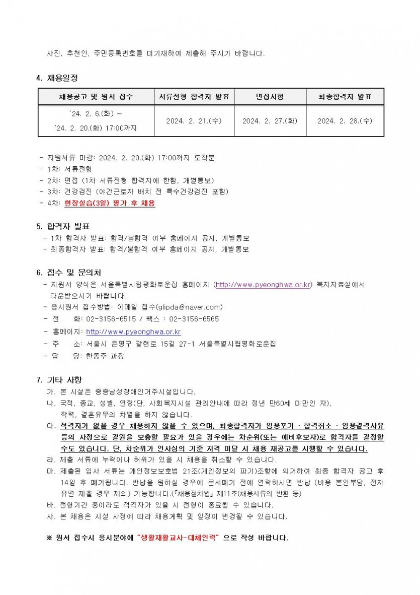 생활재활교사 대체인력 채용공고 페이지 정보 작성자 한동주 작성일 24-02-06 18:37 조회 19,757회 댓글 0건 첨부파일 파일 시립평화로운집입사지원서이력서,자기소개서및개인정보동의서.hwp (22.5K) 122회 다운로드 DATE : 2024-02-06 18:37:21 본문 이전글 다음글 목록 답변