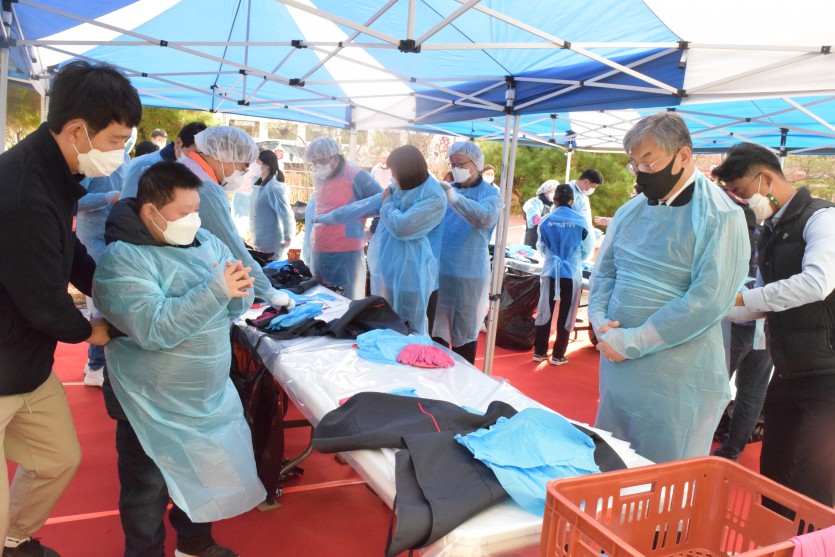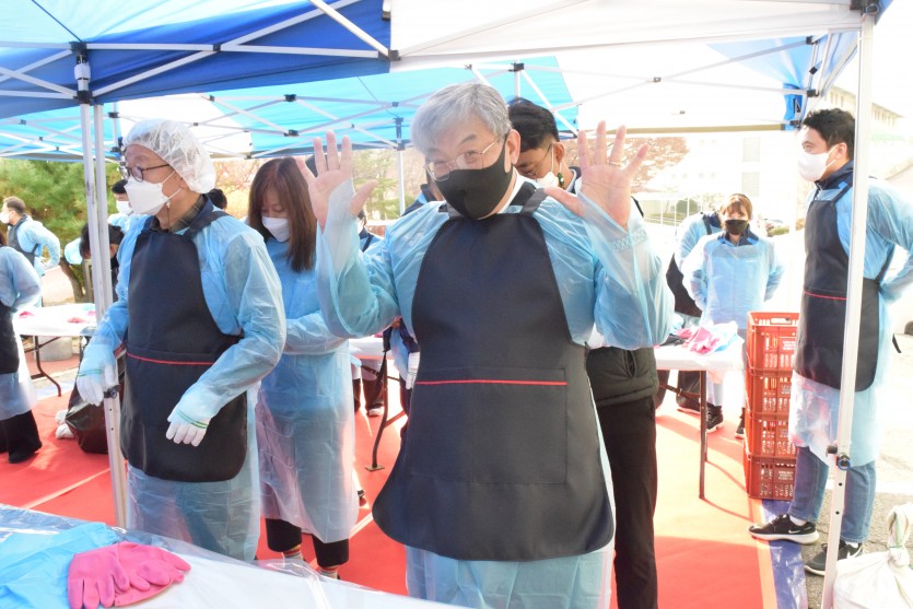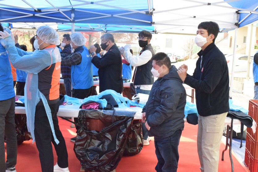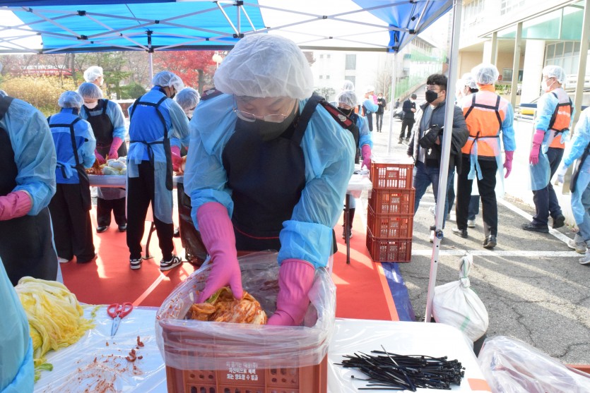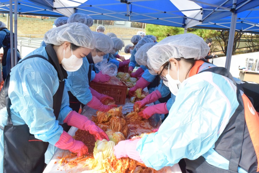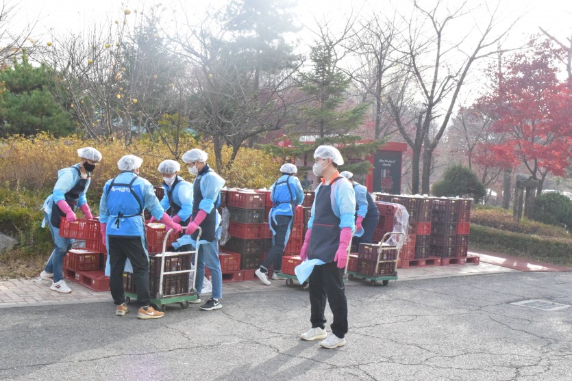 신복위와 서금원 임직원 40여 명은 직접 담근 김치 1천 포기와 직원들이 마련한 기부금을 전달해주셨습니다.