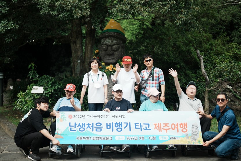 거주인 이야기 | 1차 난생처음 비행기타고 제주여행 페이지 정보 작성자 한동주 작성일 22-09-24 17:56 조회 10,480회 댓글 0건 본문 평화로운집 중중장애인들이 난생처음 비행기타고 제주여행을 갔습니다. 총 2박3일 일정으로 9월 20일부터 22일까지 2박3일 일정으로 사려니숲길 천지연폭포, 색달해변, 박물관등을 관람하면서 아름다운 제주를 만끽하고 왔습니다. 처음 타는 비행기 여행으로 설레임 가득한 추억을 만들고 왔습니다. '난생처음 비행기타고 제주여행'은 구세군자선냄비 지원을 통해 총 3차에 걸쳐서 9월,10월 중 각 2박3일 일정으로 중증장애인들과 진행되는 여행프로그램입니다. 앞으로 2차 3차 여행도 기대해주시기 바랍니다. 이전글 다음글 목록