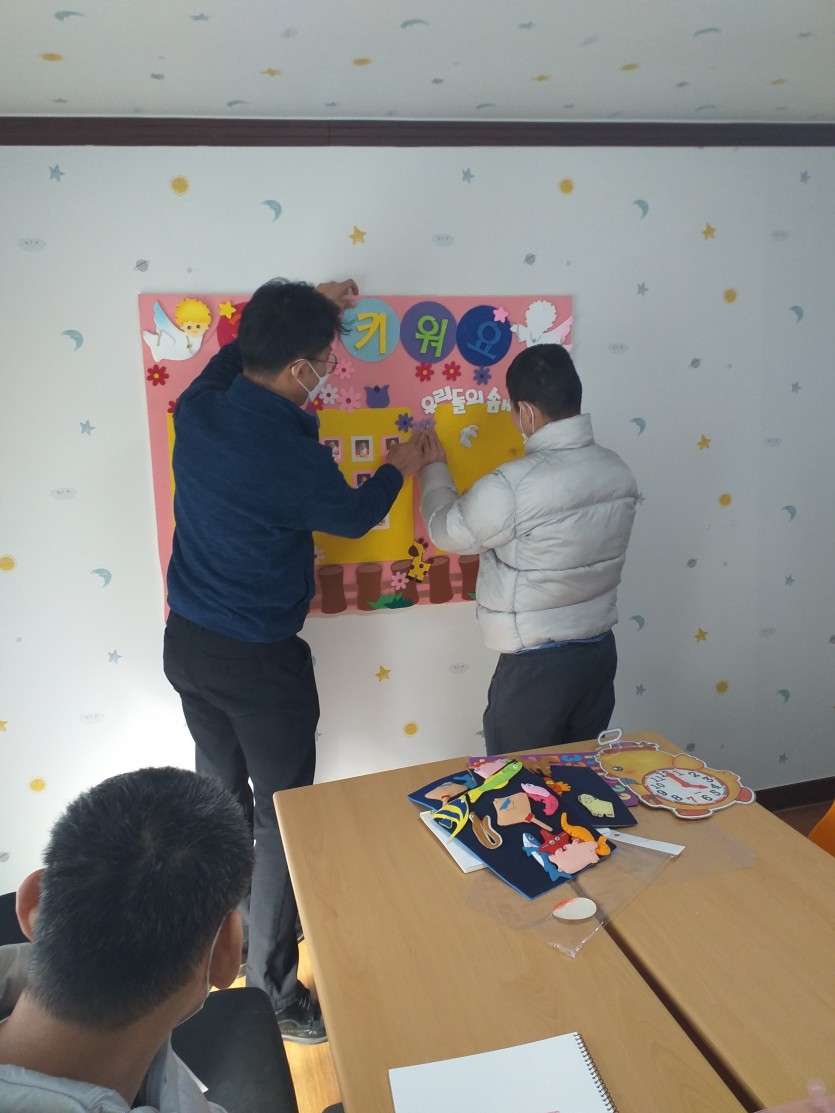 거주인 이야기 | 평화로운학교 기초학습 시작 페이지 정보 작성자 한동주 작성일 22-03-10 16:04 조회 10,841회 댓글 0건 본문 3월부터 평화로운학교가 진행됩니다.평화로운학교는 지적장애인들을 위한 교과과정입니다. 기초학습, 동화구연, 건강생활, 사회체험 및 숲체험등 다양한 커리큘럼으로 1년동안 운영이 됩니다. 평화운학교 학생들을 위한 응원 부탁드립니다.* 사진은 3월8일 사량채에서 진행된 기초학습 수업입니다. 선생님들의 수고 부탁드립니다. 이전글 다음글 목록