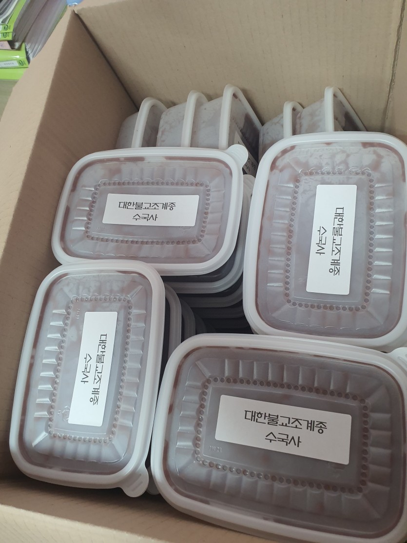 후원자·봉사자 이야기 | 대한불교조계종 수국사의 나눔 페이지 정보 작성자 박상은 작성일 19-12-23 13:42 조회 13,430회 댓글 0건 본문 12월 22일 일요일,동짓날을 맞아대한불교조계종 수국사에서 팥죽 150인분을 후원해주셨습니다.많은 양의 맛있는 팥죽을 후원해주신 덕분에평화로운집 가족 모두가 든든히 잡수시고행복한 동짓날을 보냈습니다.평화로운집에 관심 가져주시고 찾아주신수국사 신도 회장님과 스님께 진심으로 감사드립니다^-^ 이전글 다음글 목록