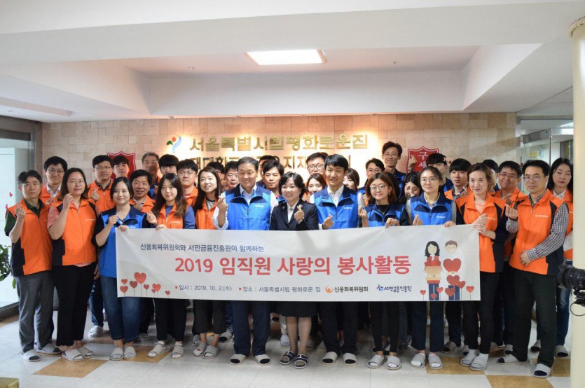 신용회복위원회와 서민금융진흥원 임직원 45명은 10월2일 서울 은평구에 위치한 중증장애인시설 ‘서울특별시립평화로운집’에서 봉사활동을 펼쳤다.