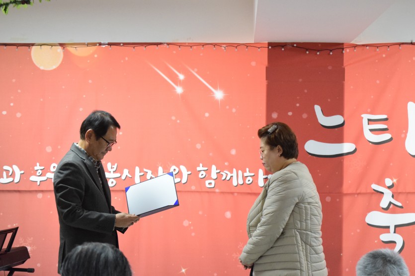 후원자·봉사자 이야기 | 지역주민, 자원봉사자, 후원자와 함께하는 느티나무축제 페이지 정보 작성자 한동주 작성일 19-12-17 12:03 조회 13,358회 댓글 0건 본문 지난 12월 7일 느티나무축제가 진행되었습니다. 올해 함께 수고해주신 지역주민, 자원봉사자, 후원자와 평화로운집 가족 여러분들이 함께하는 축제였습니다. 행사동안 오랜기간 공헌해주신 후원자와 자원봉사자 표창과 축하공연도 함께 진행되었습니다. 항상 감사드리고, 앞으로도 평화로운집 가족여러분들에 대한 관심과 성원 부탁드립낟. 이전글 다음글 목록