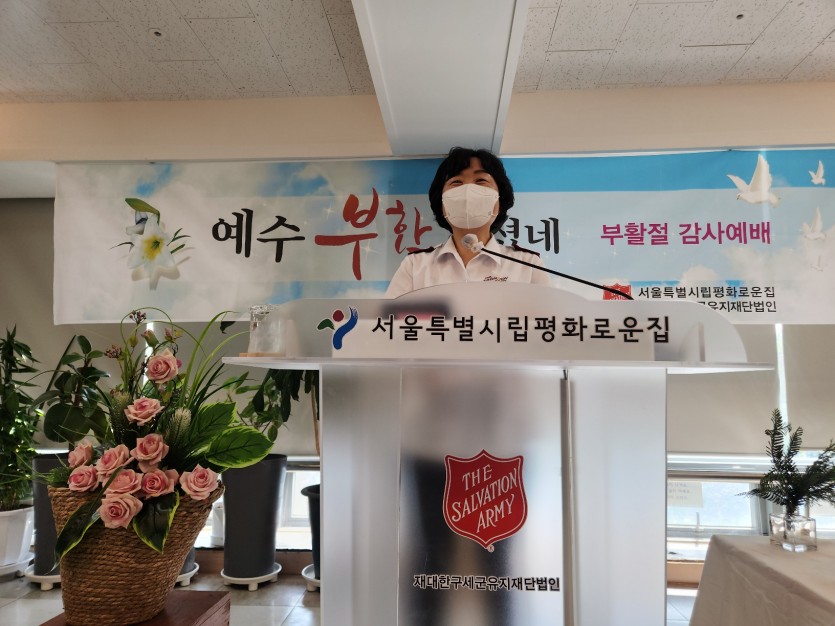 "무엇이 기적일까" 설교 김순희 국장. 사회 변진옥 사관.