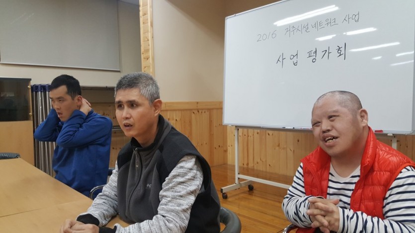 플레잉프로그램 종결평가회 페이지 정보 작성자 사회사업최선경 작성일 16-12-26 17:46 조회 9,978회 댓글 0건 첨부파일 본문 2016년도 플레잉프로그램 종결평가회를 실시했습니다.1년 동안 프로그램 지원해주신 서울시 중구 장애인복지관에 감사의 말씀 드립니다.거주인 분들의 소감과 만족도를 듣고, 선생님들과 함께 간식시간을 가졌습니다~2017년도에도 거주인 분들께 더 좋은 프로그램으로 플레잉 화이팅!! ^^ 이전글 다음글 목록