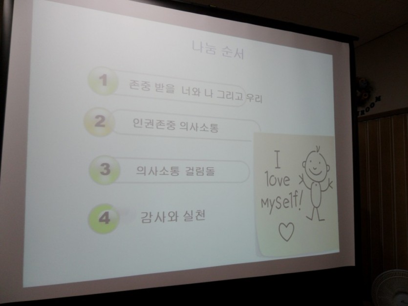 생활실 내에서 교육을 진행하였고, 교육에 대한 이해도를 돕기 위해