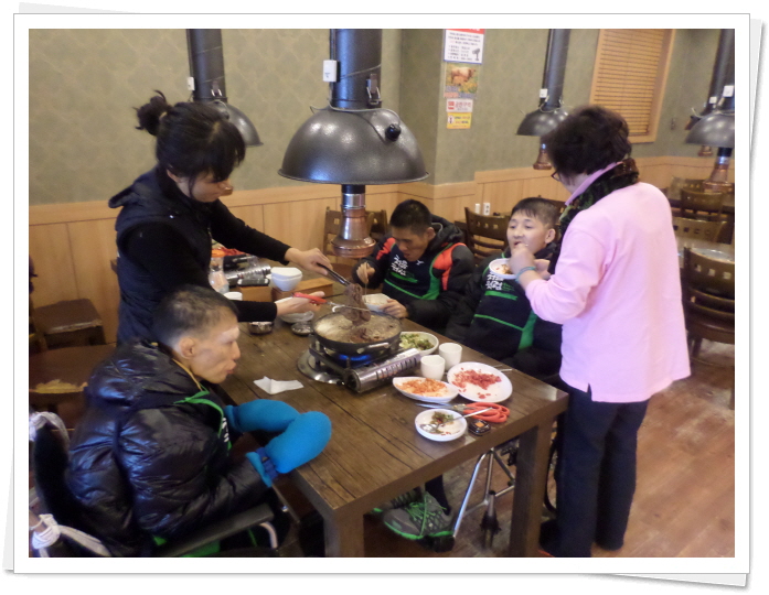 2생활관 기분좋은방 나들이활동 페이지 정보 작성자 이선희 작성일 14-02-18 16:14 조회 9,145회 댓글 0건 첨부파일 본문 2생활관 귀요미 가족들이 좋아하는 불고기 외식을 겸한 나들이 활동을 하고 왔습니다. 평소 행동장애로 인해 외출이 어려웠던 김인*님, 노상*님, 이용*님을 모시고 서오능 임가내에서 맛있는 불고기 만찬을 하고 평화의공원을 산책하고 돌아왔습니다. 이전글 다음글 목록