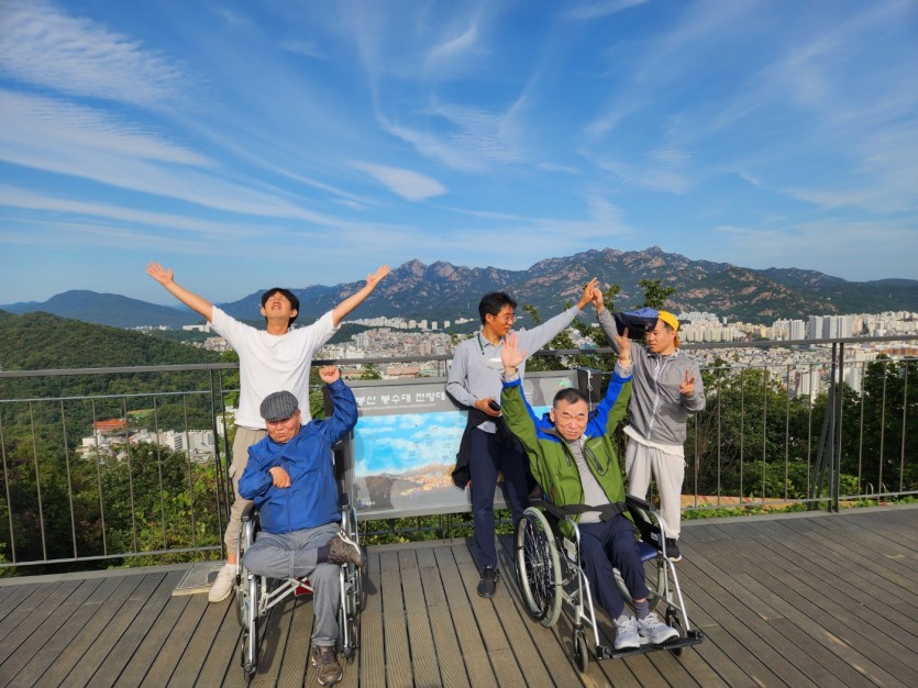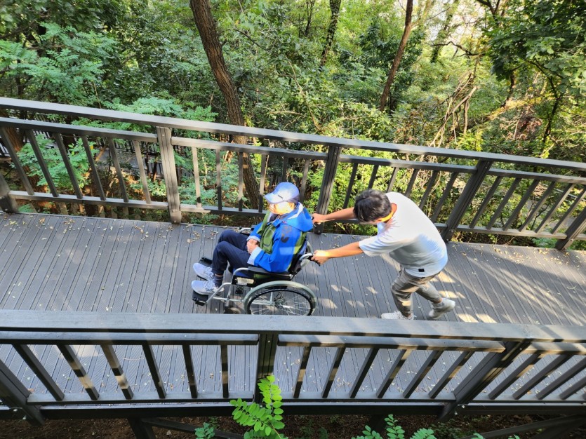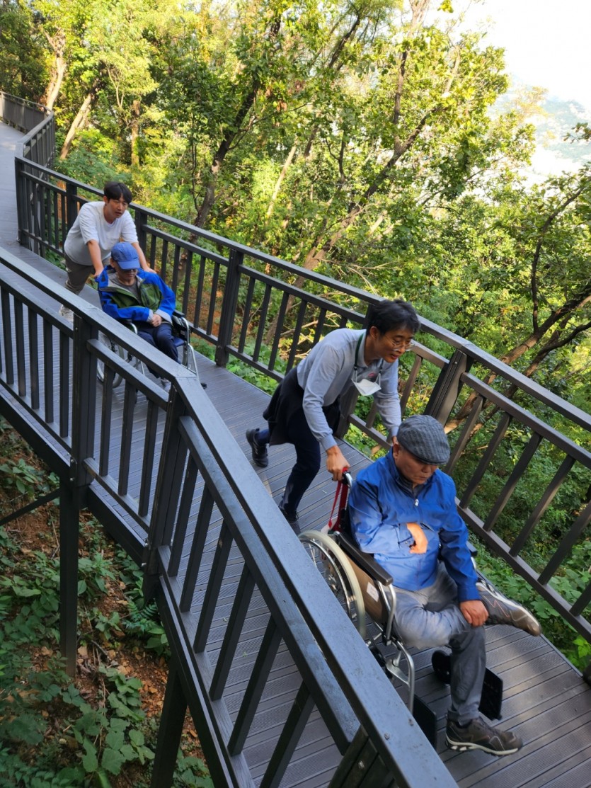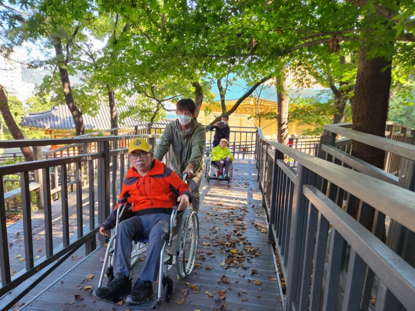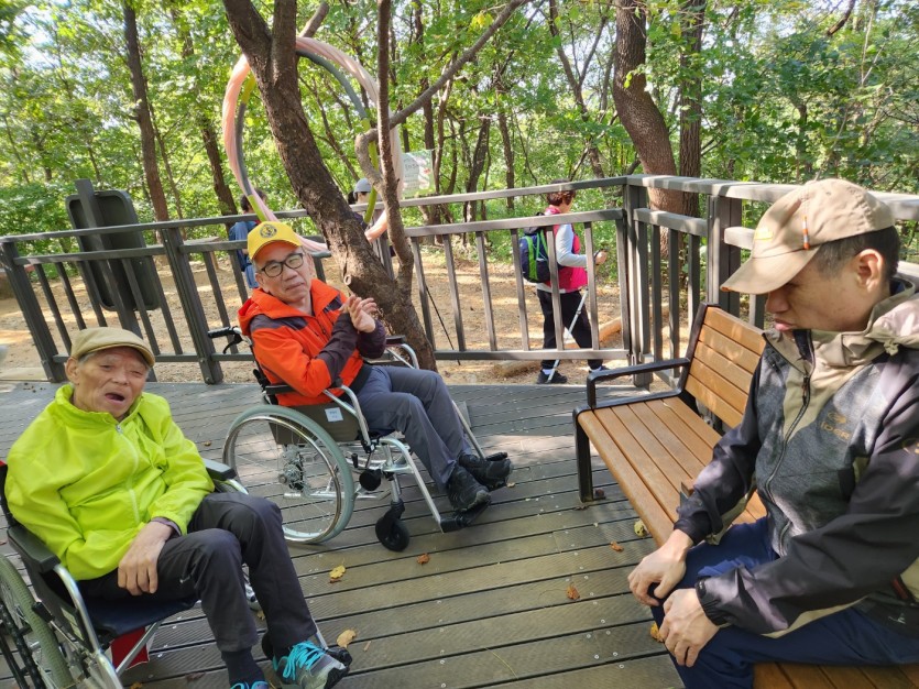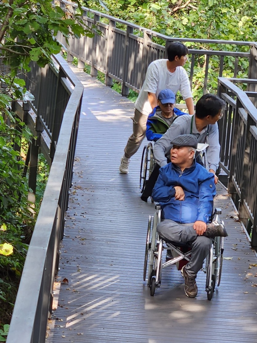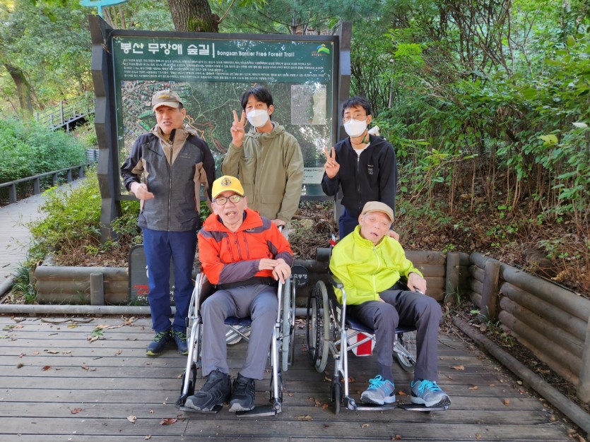 거주인 이야기 | 봉산 편백나무 휠체어 숲 트레킹 페이지 정보 작성자 장설궁 작성일 23-10-09 09:18 조회 8,838회 댓글 0건 본문 평화로운집 가족들과 10월 5일 6일 봉산 편백나무길 휠체어 트레킹을 다녀왔습니다. 비 온 뒤 맑은 하늘과 숲의 향기도 맡고 꽃과 나뭇잎을 만져보며 느껴보고힘들게 정상에 올라 맛보는 과일의 꿀맛 파아란 하늘이 웃어준 즐겁고 행복한 산행이었습니다. 이전글 다음글 목록
