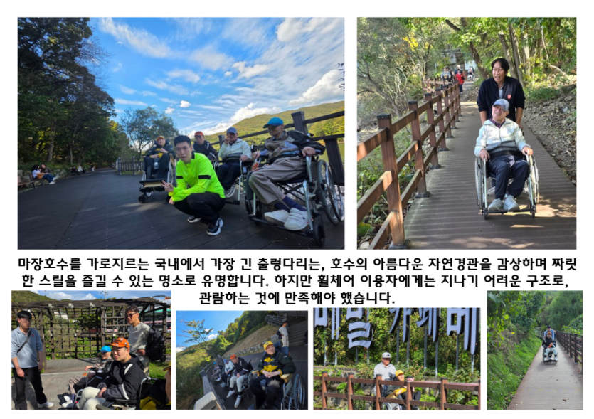 거주인 이야기 | 2025년 12차 문화누리나들이 종료 페이지 정보 작성자 장설궁 작성일 25-10-29 14:21 조회 2,093회 댓글 0건 본문 2025년 10월 25일, 시립평화로운집(중증장애인 거주시설)은 연중 문화 체험 프로그램 '문화누리나들이'의 12차 활동을 행복하게 마무리했습니다마지막회차 에서는 마장 호수 산책과 오랑주리 카페 체험으로사회적 참여와 정서적 안정을 도모 하였습니다. 함께 해주신선생님들에게 감사의 마음을 전합니다.감사합니다. 이전글 다음글 목록