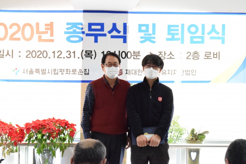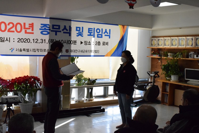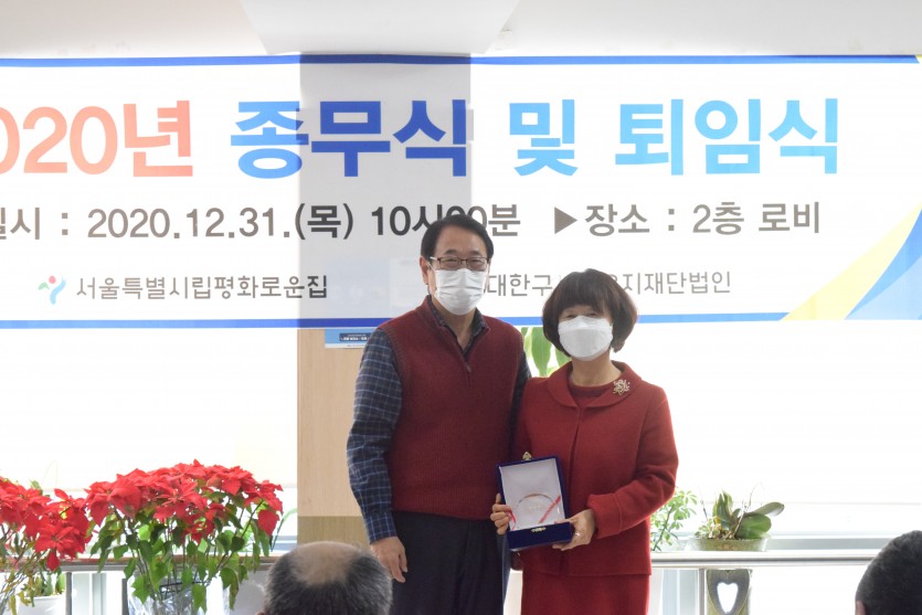 2020년 평화로운집 종무식 및 퇴임식이 12월31일 본원 2층 로비에서 진행되었습니다.