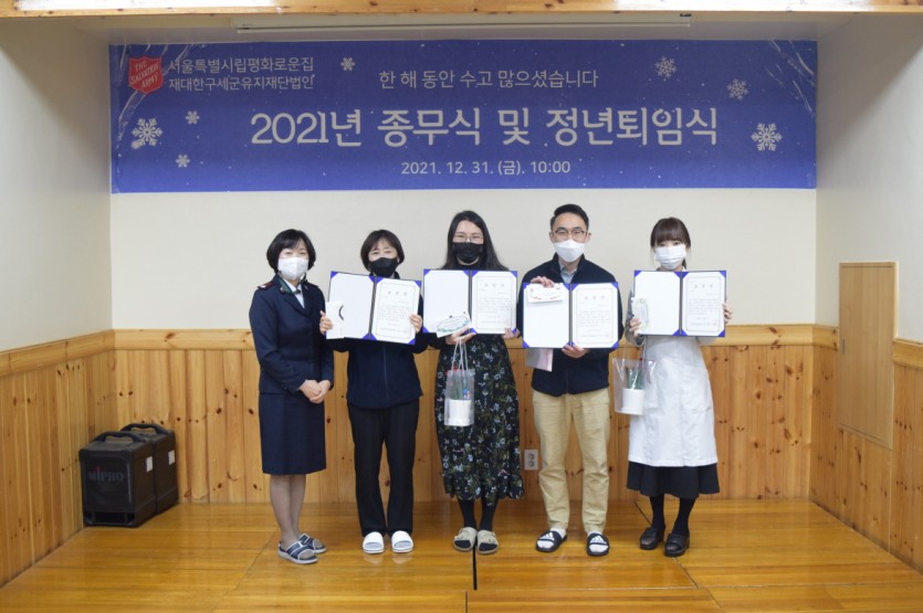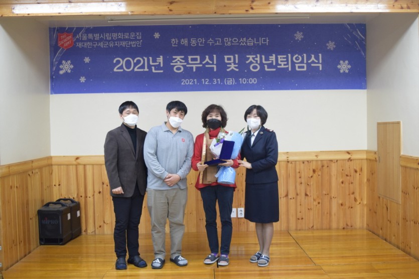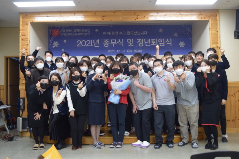 2021년 평화로운집 종무식 및 퇴임식이 12월31일(금) 본원 지하강당에서 진행되었습니다.