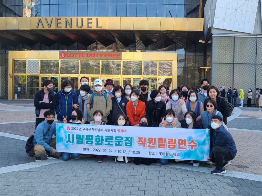 2022년 직원연수 페이지 정보 작성자 장설궁 작성일 22-10-13 16:12 조회 11,643회 댓글 0건 첨부파일 파일 2차직원연수0.5.gif (11.3M) 125회 다운로드 DATE : 2022-10-13 16:39:03 본문 2022년 9월 27일 원장님,10월 12일 국장님, 10월25일 직원과 함께한 직원교육...저희평화로운집 직원93분들이 약 30여분씩 3차에 걸쳐 직원연수가 있었습니다. 2022년 기준 대한민국 최고층 건물이자 세계에서 5번째로 높은 건물인 서울스카이를 다녀왔습니다. 중식후 영화관람과 롯데어드벤처투어가 있었구요~~갑자기 쌀쌀해진 날씨에 모든 직원분들 모~두 참석해 주셔서 감사합니다~~ 이전글 다음글 목록
