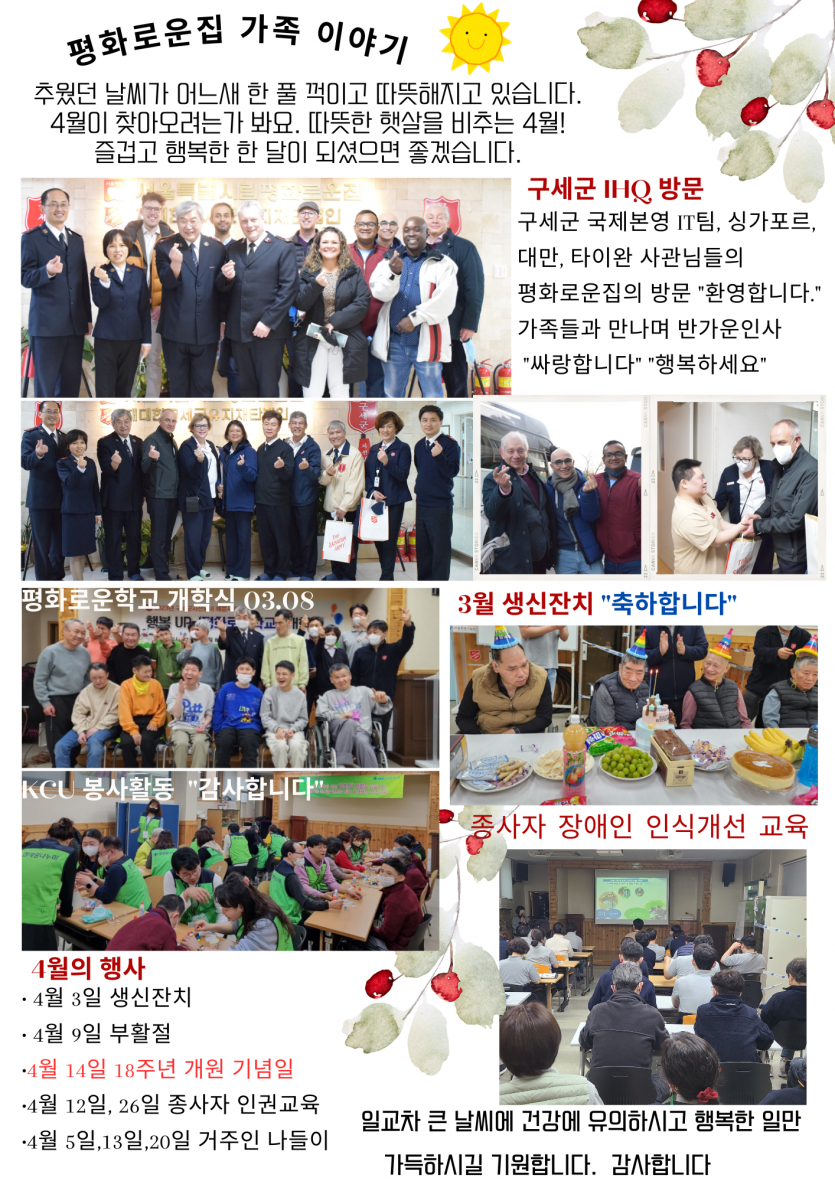 2023년 4월 후원감사편지 페이지 정보 작성자 장설궁 작성일 23-03-31 11:34 조회 10,574회 댓글 0건 본문 기분 좋은 봄이 찾아 왔습니다.설렘 가득한 희망과 꿈마음껏 품으며 많은 것을 성취할 수 있는 계절이 되었으면 합니다.항상 건강 유의 하시고 행복하세요 이전글 다음글 목록