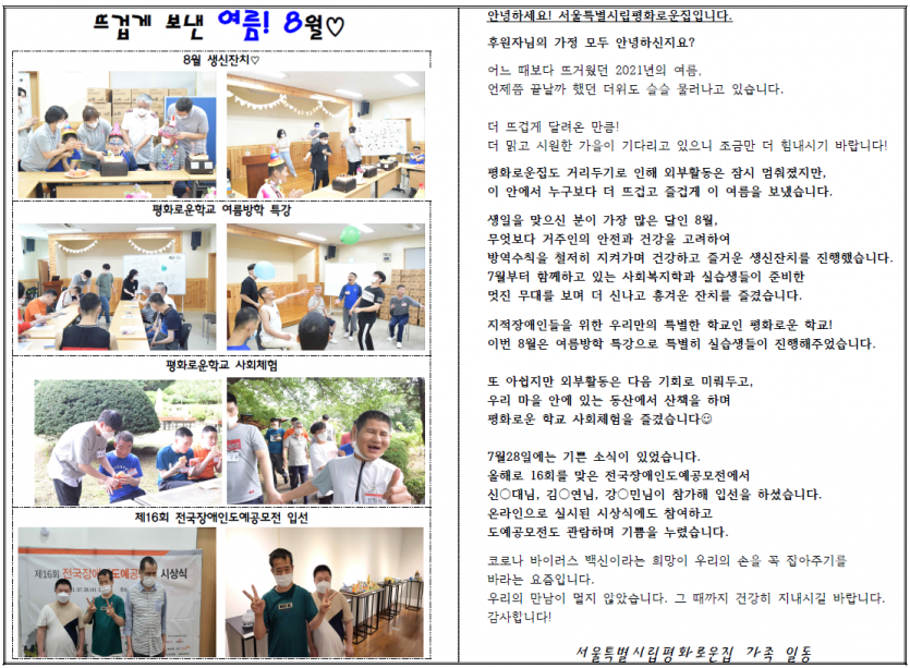 2021년 8월 후원자 감사편지 페이지 정보 작성자 박상은 작성일 21-11-18 09:59 조회 12,997회 댓글 0건 본문 여름의 끝에서~8월, 후원자님께 감사의 편지를 올립니다. 이전글 다음글 목록