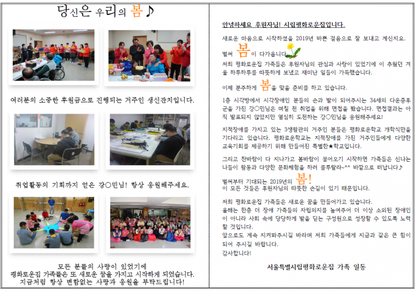 2019년 3월 후원자 감사편지 페이지 정보 작성자 박상은 작성일 20-09-11 11:30 조회 14,032회 댓글 0건 본문 늘 나눔으로 함께해주시는 후원자님께감사의 편지를 올립니다. 이전글 다음글 목록