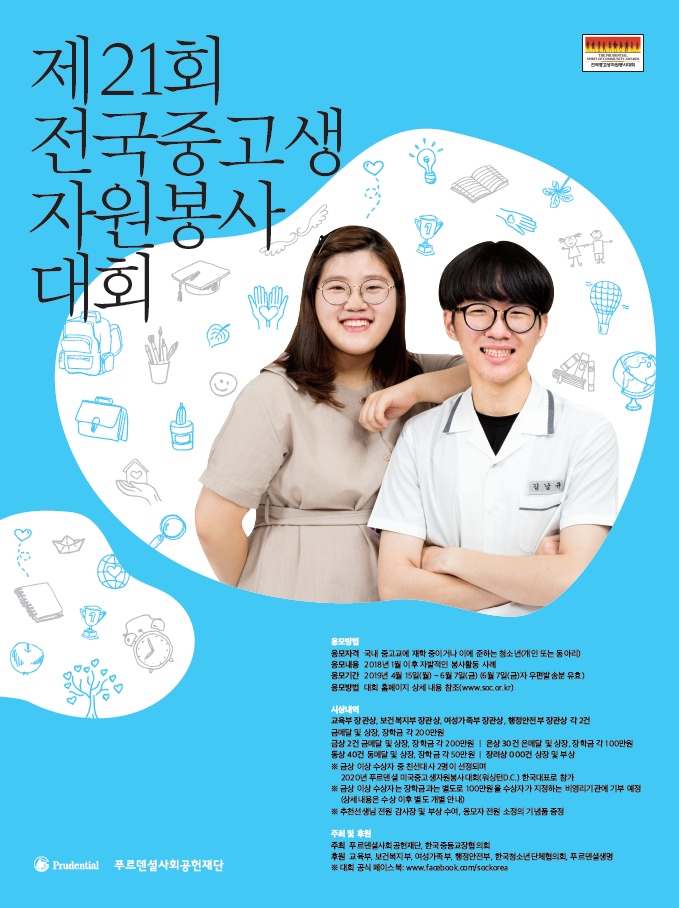 - 파일 붙임 2. 제21회 전국중고생자원봉사대회 응모요강 홍보 리플렛.pdf (799.0K) 133회 다운로드 DATE : 2019-04-12 11:17:34